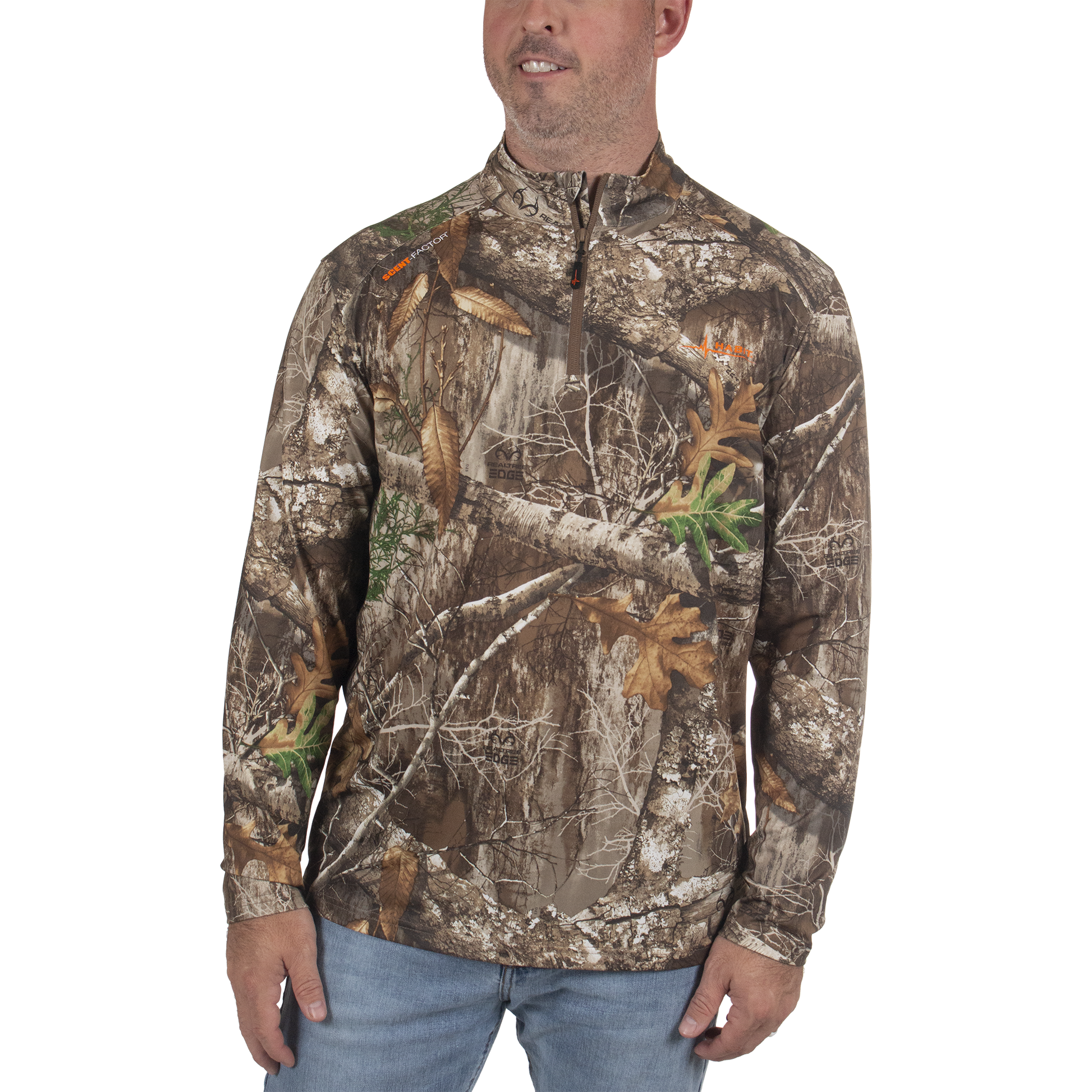 Performance Stretch Midweight Polyester Spandex for next to skin comfort with Scent-Factor Technology and Sweat-Powered Cooling.
